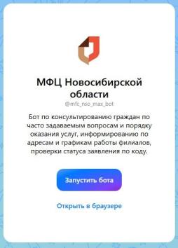 Чат-бот МФЦ Новосибирской области в МАХ05.12.2025